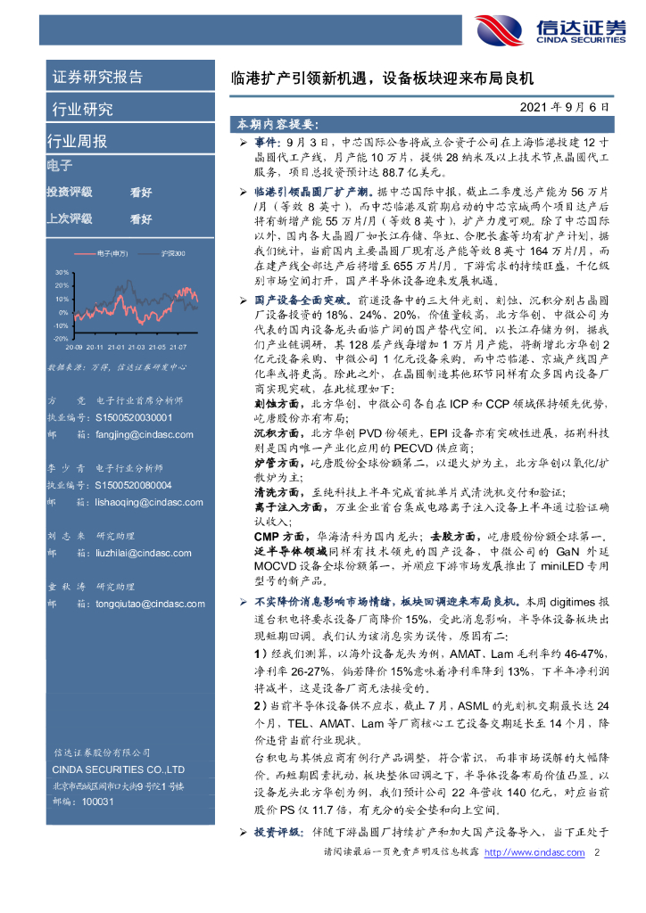 信达证券:电子行业周报:临港扩产引领新机遇,设备板块迎来布局良机.pdf