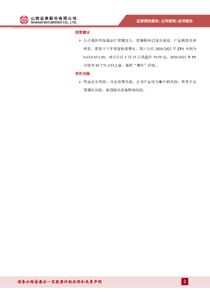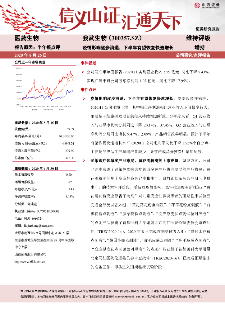 山西证券:我武生物(300357)-疫情影响逐步消退,下半年有望恢复快速增长.pdf