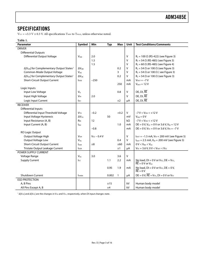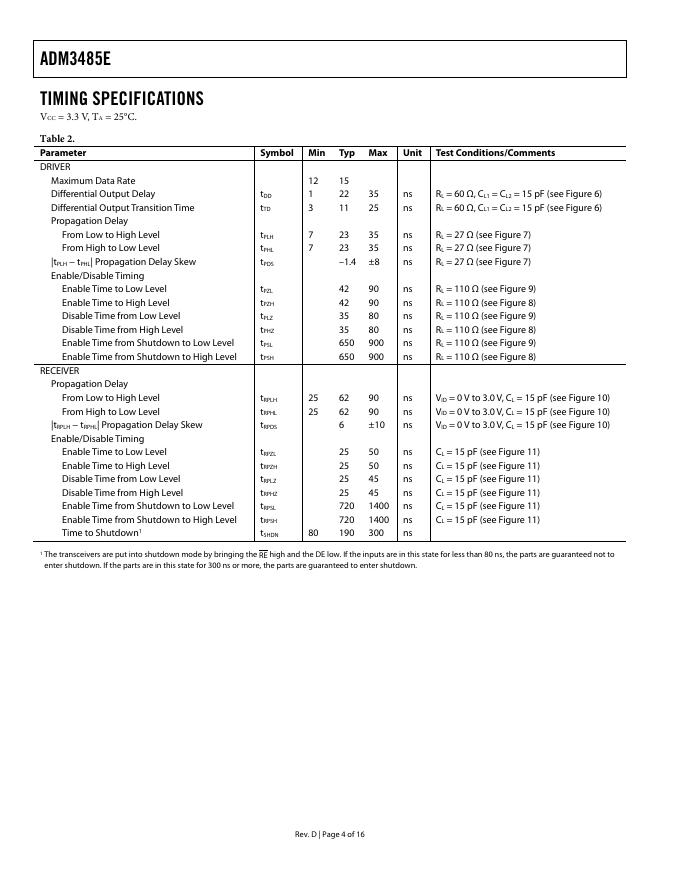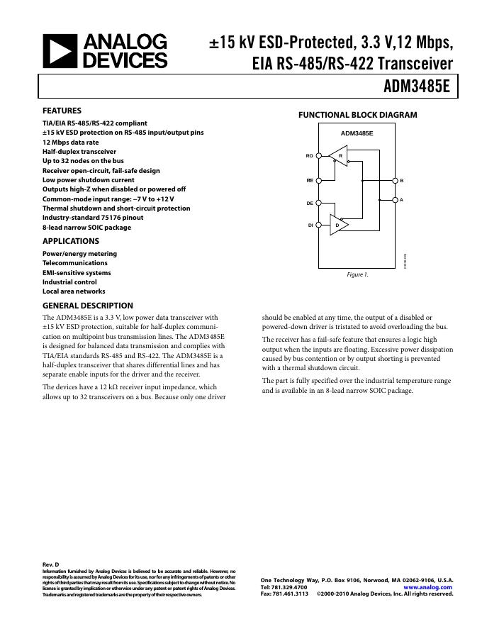 ANALOG DEVICES ADM3485E 英文产品数据手册 Rev D.pdf