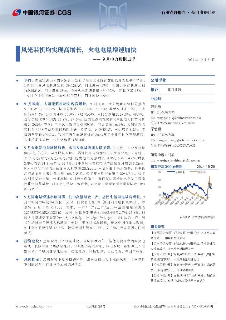中国银河:9月电力数据点评:风光装机均实现高增长,火电电量增速加快.pdf