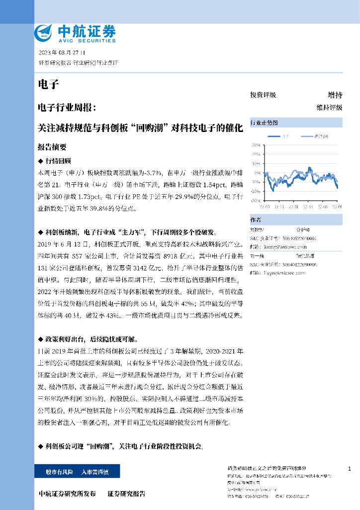 中航证券:电子行业周报:关注减持规范与科创板“回购潮”对科技电子的催化.pdf