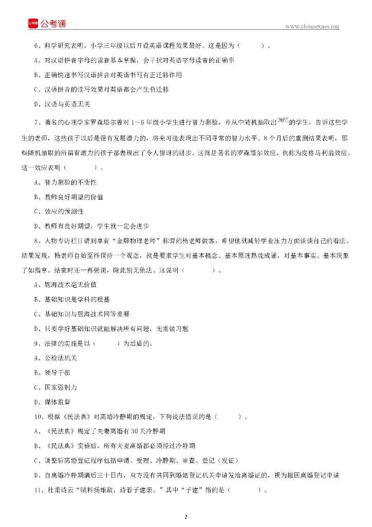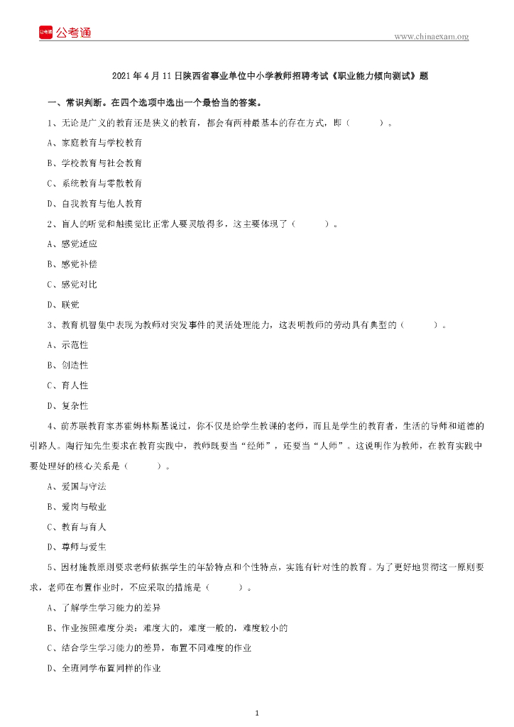 2021年4月11日陕西事业单位中小学教师招聘考试《职业能力倾向测试》题.pdf