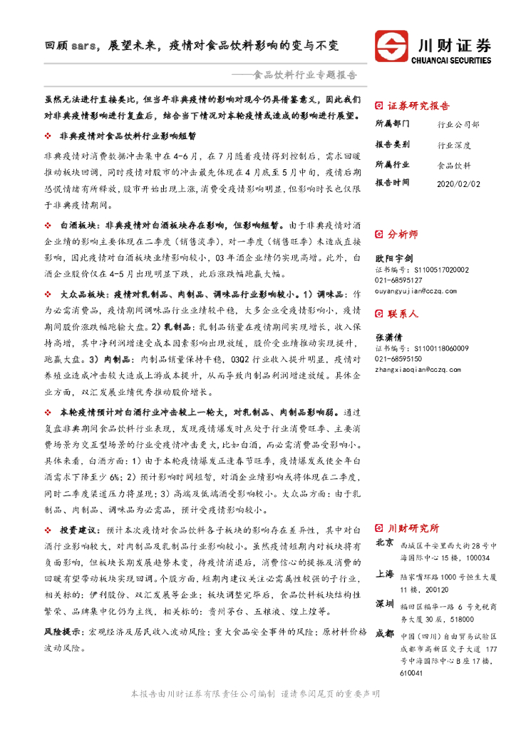 川财证券:食品饮料行业专题报告:回顾sars,展望未来,疫情对食品饮料影响的变与不变.pdf