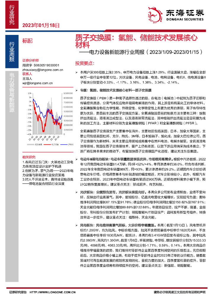 东海证券:电力设备新能源行业周报:质子交换膜:氢能、储能技术发展核心材料.pdf