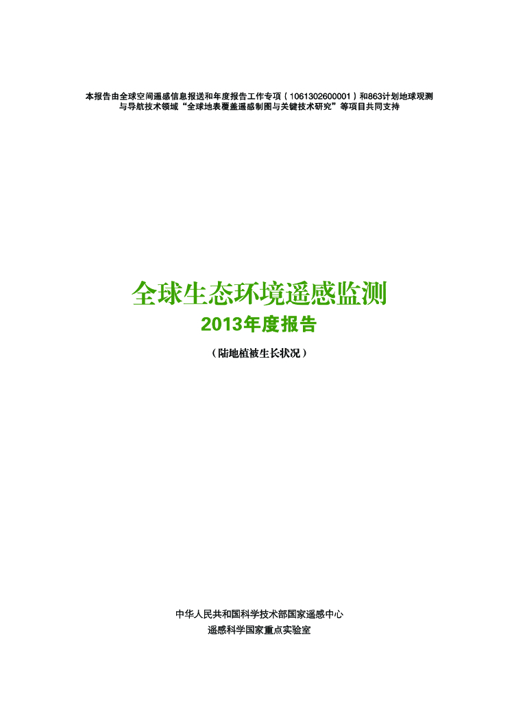 国家遥感中心:全球生态环境遥感监测2013年度报告——全球陆地植被生长状况变化及显著分析.pdf