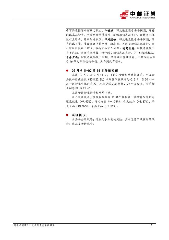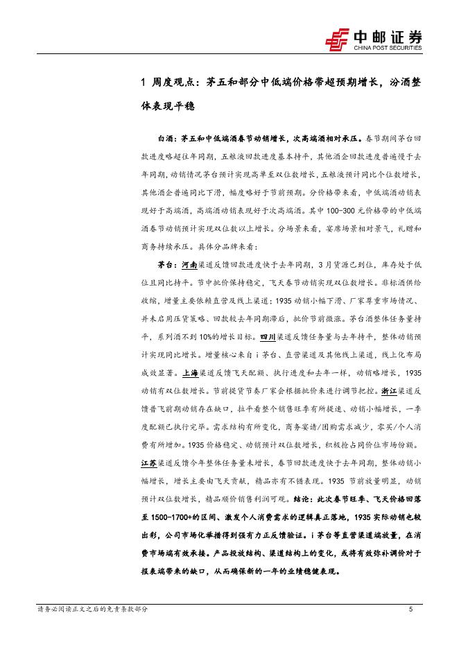 中邮证券:食品饮料行业周报-春节跟踪:茅五和部分中低端价格带超预期增长,汾酒整体表现平稳.pdf