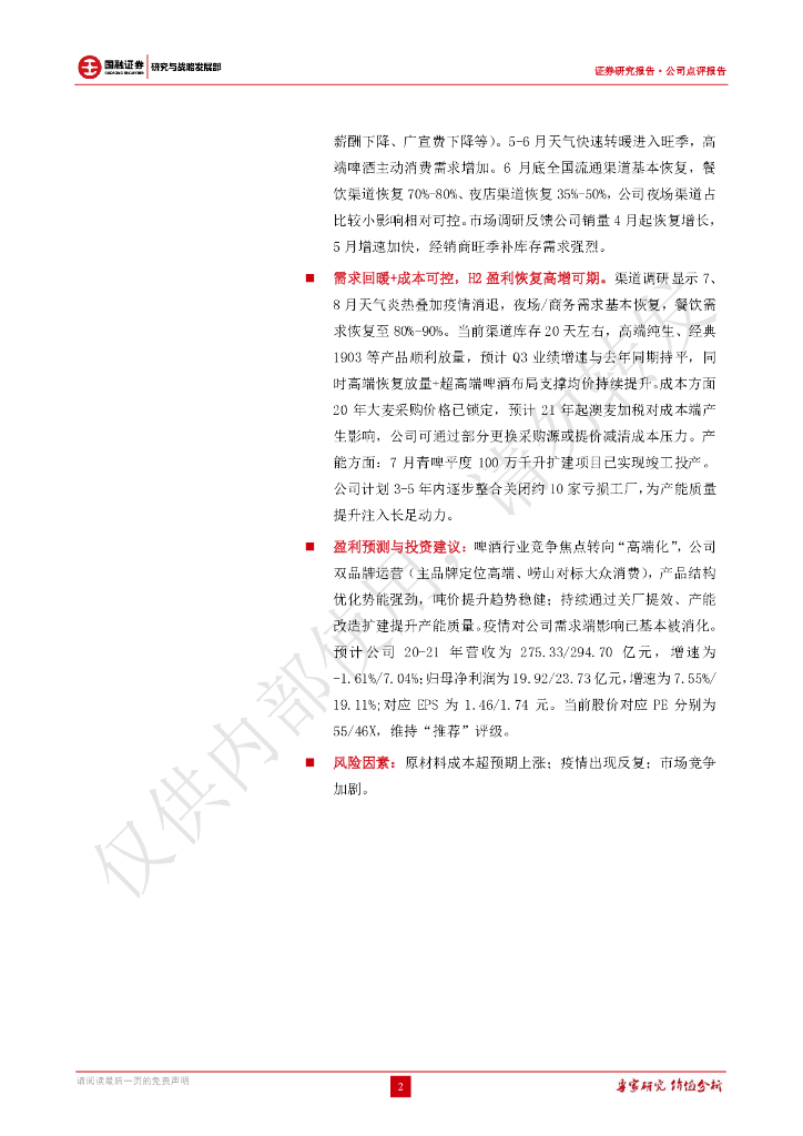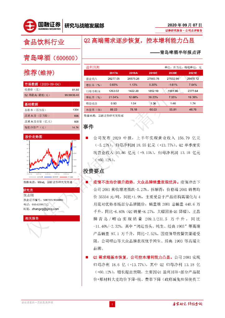 国融证券:青岛啤酒半年报点评:Q2高端需求逐步恢复,控本增利能力凸显.pdf