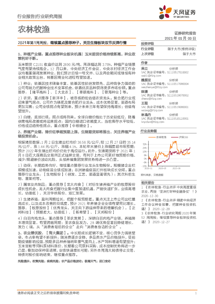 天风证券:农林牧渔2021年第1周周报:继续重点推荐种子,关注生猪板块双节反弹行情.pdf