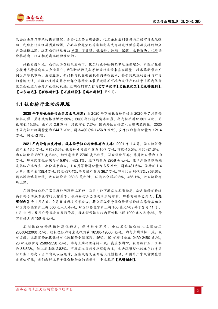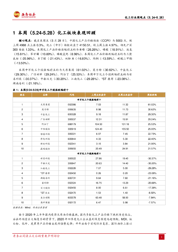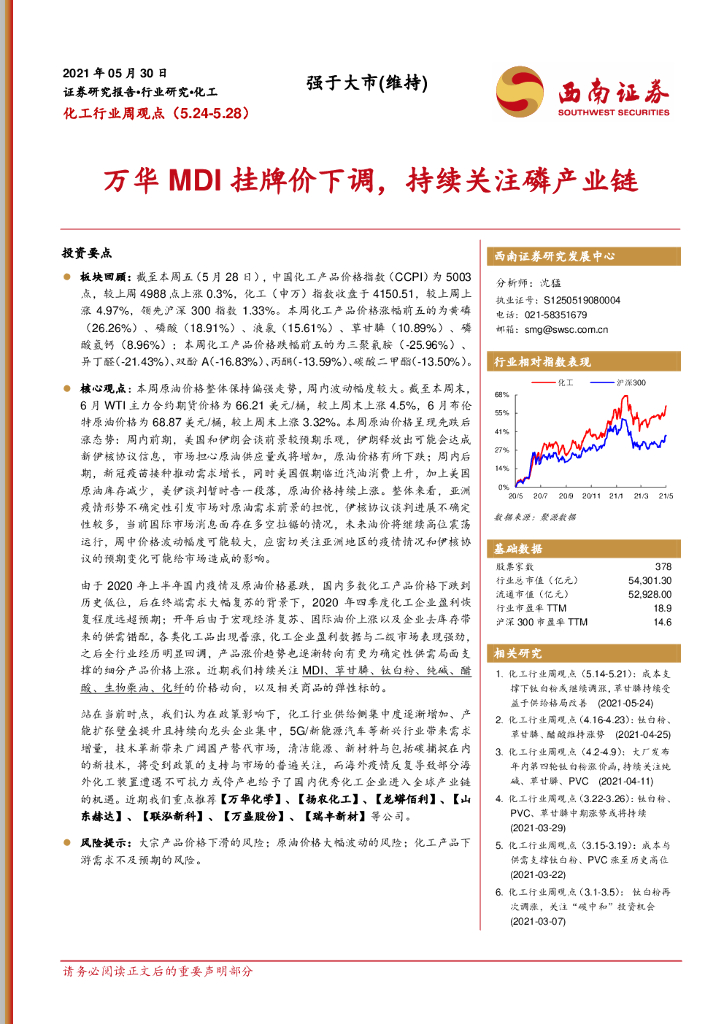 西南证券:化工行业周观点:万华MDI挂牌价下调,持续关注磷产业链.pdf