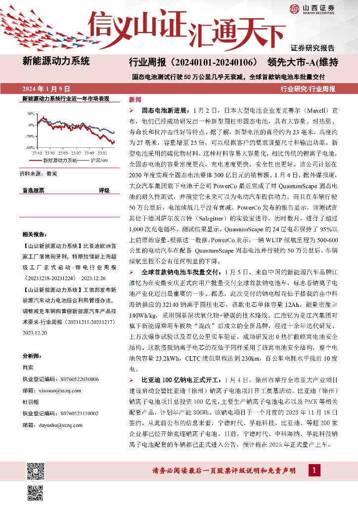 山西证券:新能源动力系统行业周报:固态电池测试行驶50万公里几乎无衰减,全球首款钠电池车批量交付.pdf