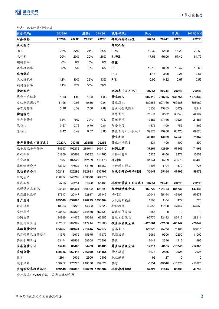 国海证券:比亚迪(002594)-2024年一季报点评:24Q1业绩符合预期,智驾、出海加速推进.pdf
