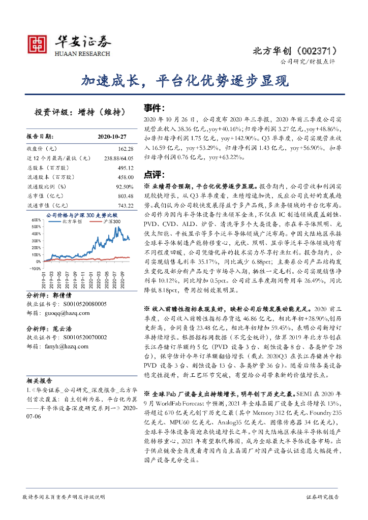 华安证券:北方华创(002371)-加速成长,平台化优势逐步显现.pdf
