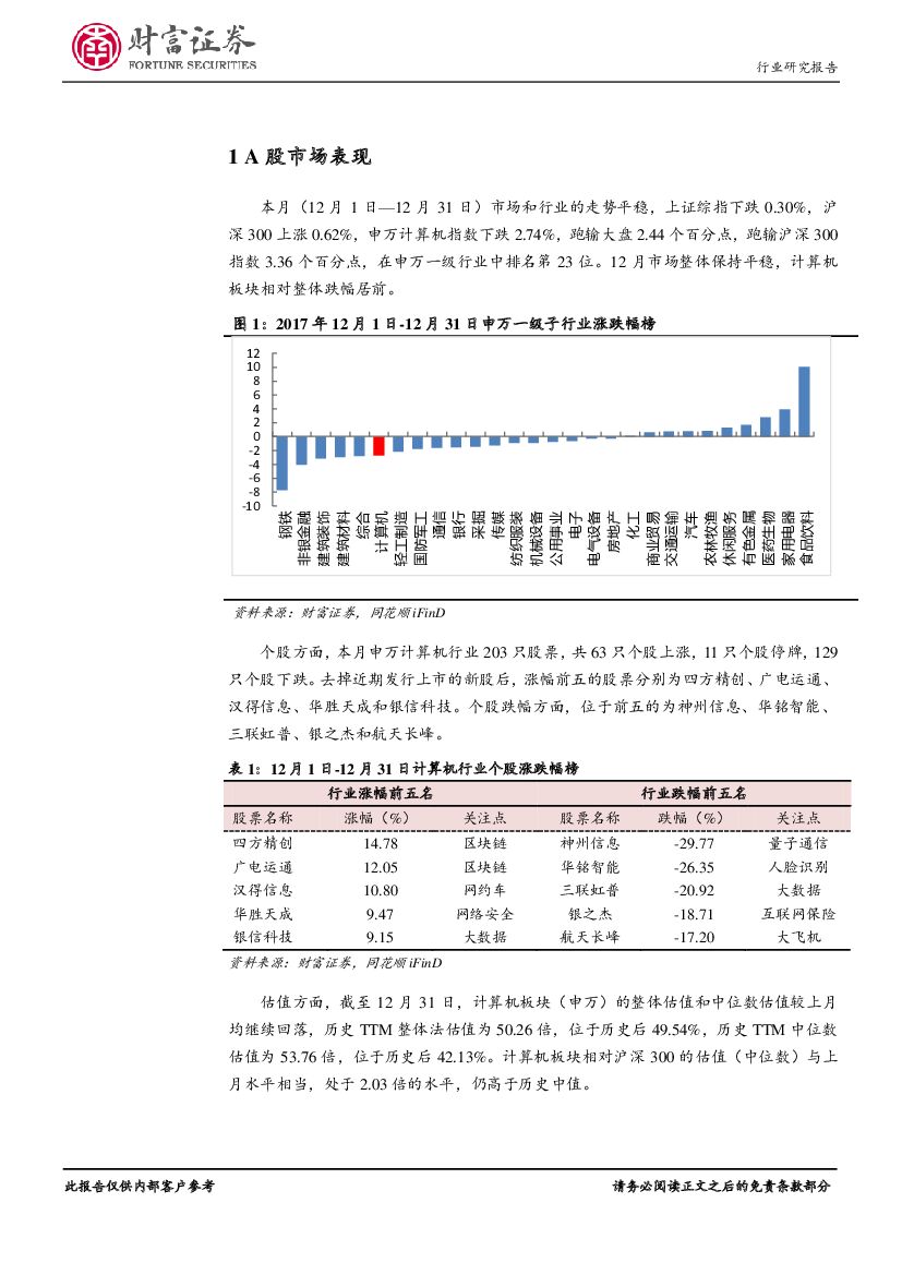 财富证券:计算机行业月度报告:行业平稳发展,关注细分行业龙头.pdf