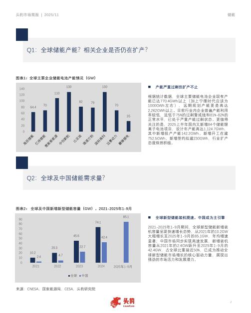 头豹研究院:全球储能行业:满产满销背后,储能行业扩产潮能否消化?.pdf