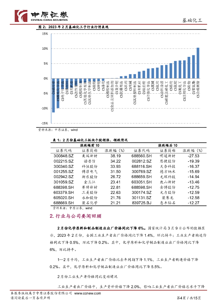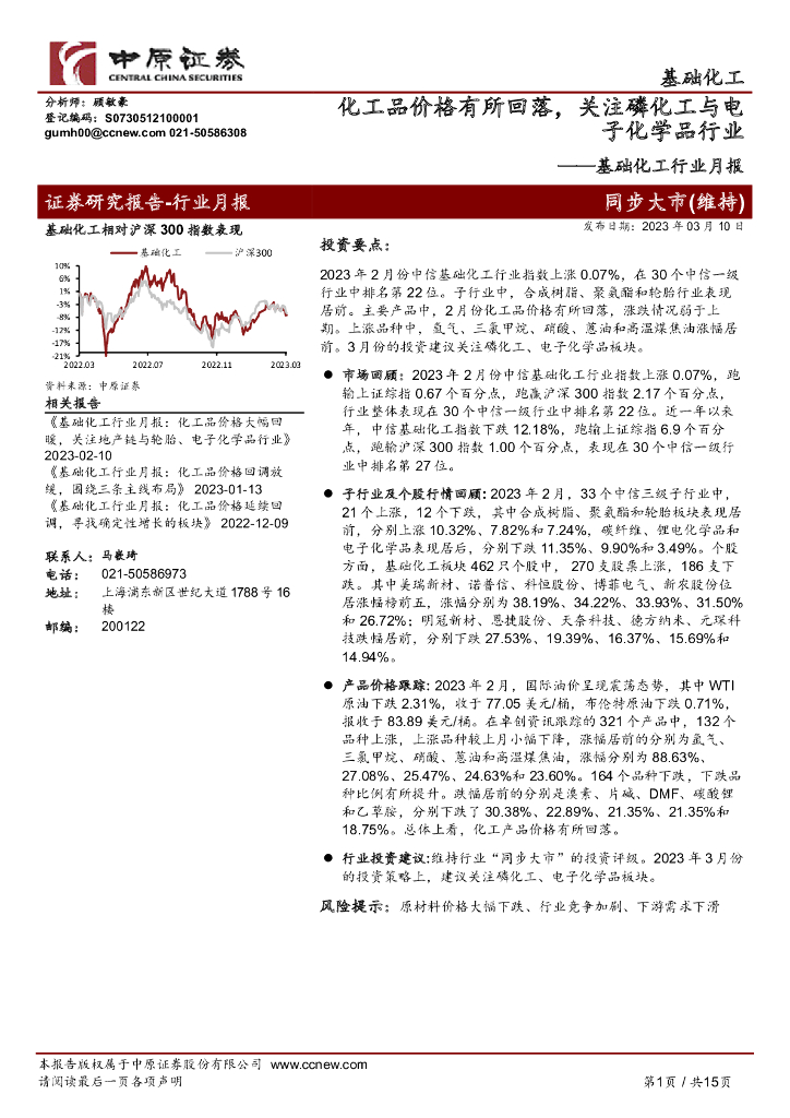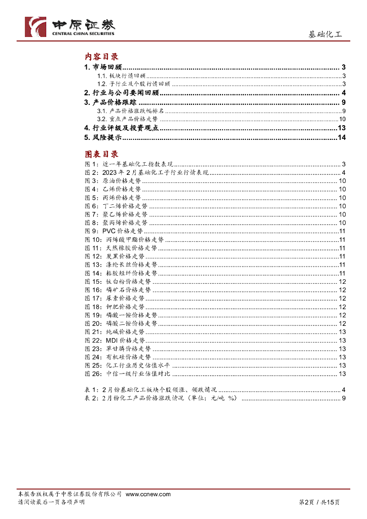 中原证券:基础化工行业月报:化工品价格有所回落,关注磷化工与电子化学品行业.pdf
