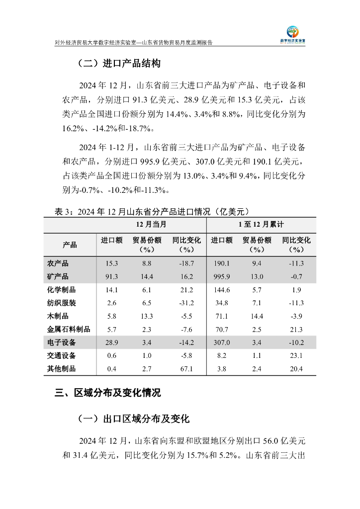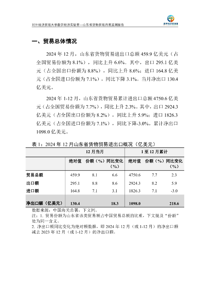 对外经济贸易大学:山东省货物贸易月度监测报告(2024年1-12月).pdf