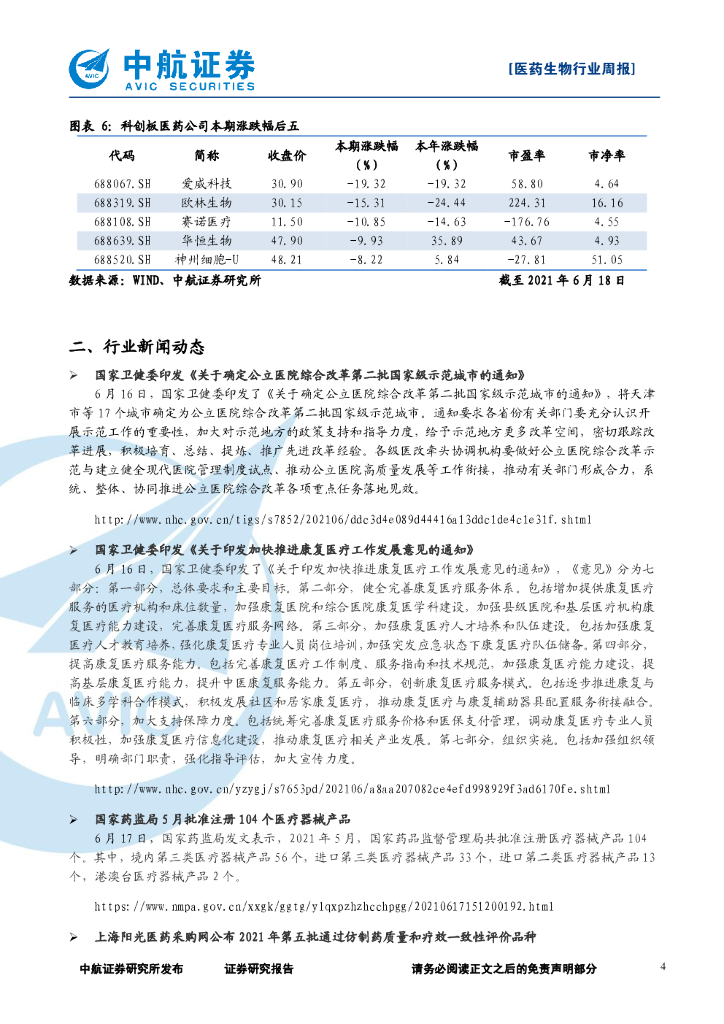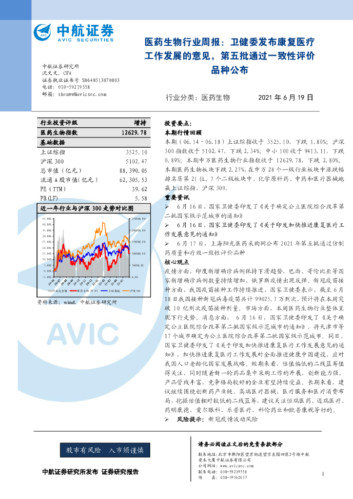 中航证券:医药生物行业周报:卫健委发布康复医疗工作发展的意见,第五批通过一致性评价品种公布.pdf