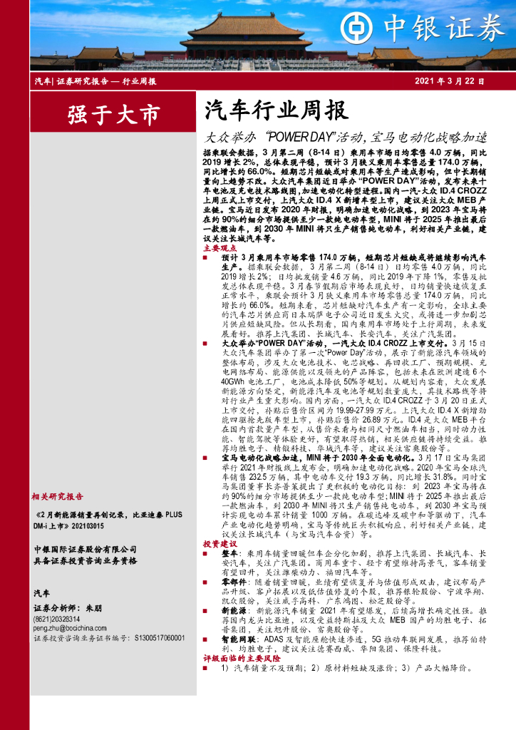 中银证券:汽车行业周报:大众举办“POWERDAY”活动,宝马电动化战略加速.pdf