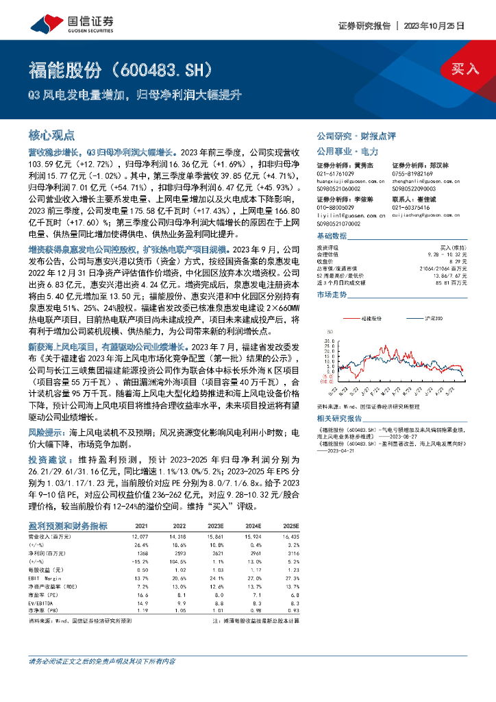 国信证券:福能股份(600483)-Q3风电发电量增加,归母净利润大幅提升.pdf