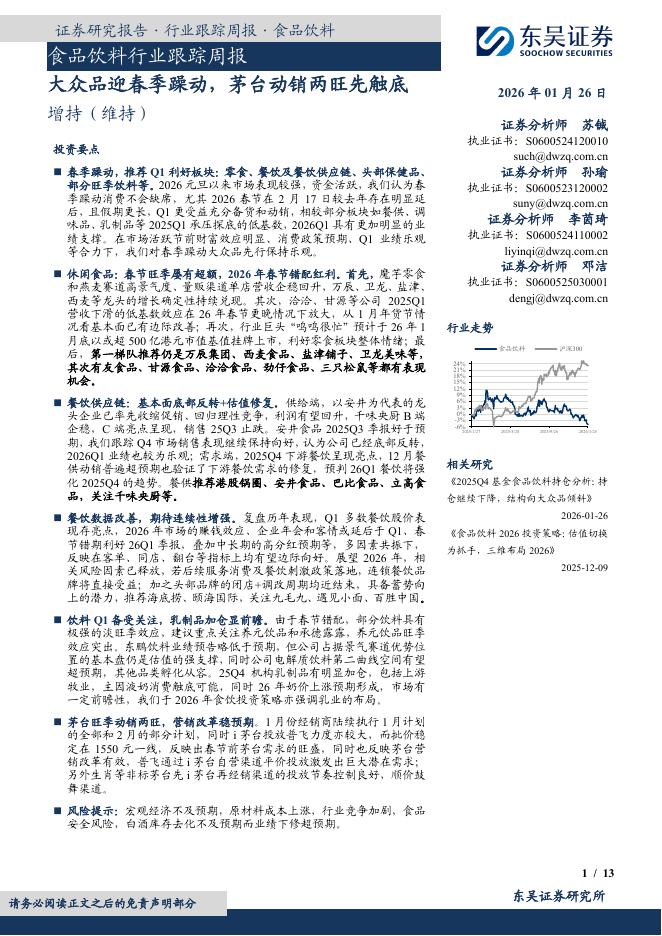 东吴证券:食品饮料行业跟踪周报:大众品迎春季躁动,茅台动销两旺先触底.pdf