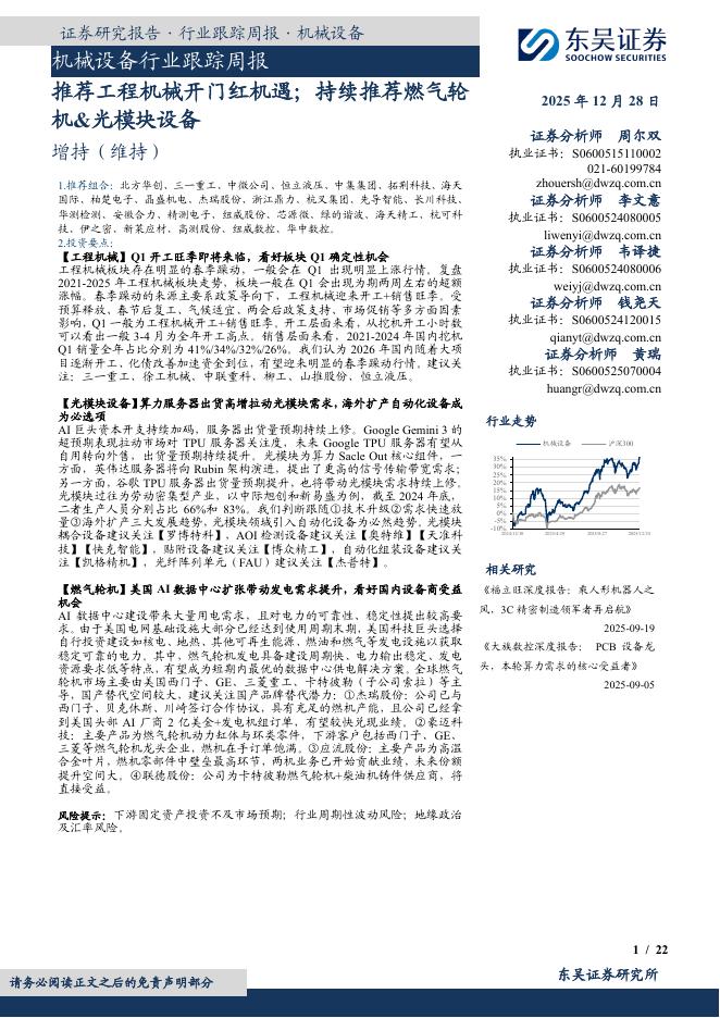 东吴证券:机械设备行业跟踪周报:推荐工程机械开门红机遇;持续推荐燃气轮机&光模块设备.pdf