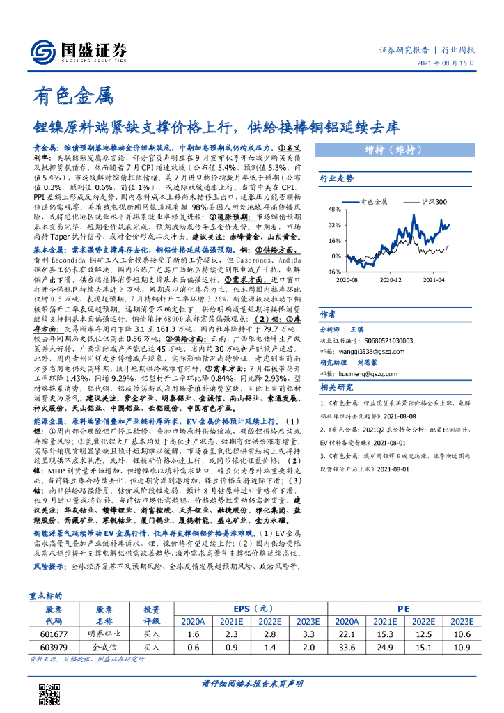 国盛证券:有色金属行业周报:锂镍原料端紧缺支撑价格上行,供给接棒铜铝延续去库.pdf