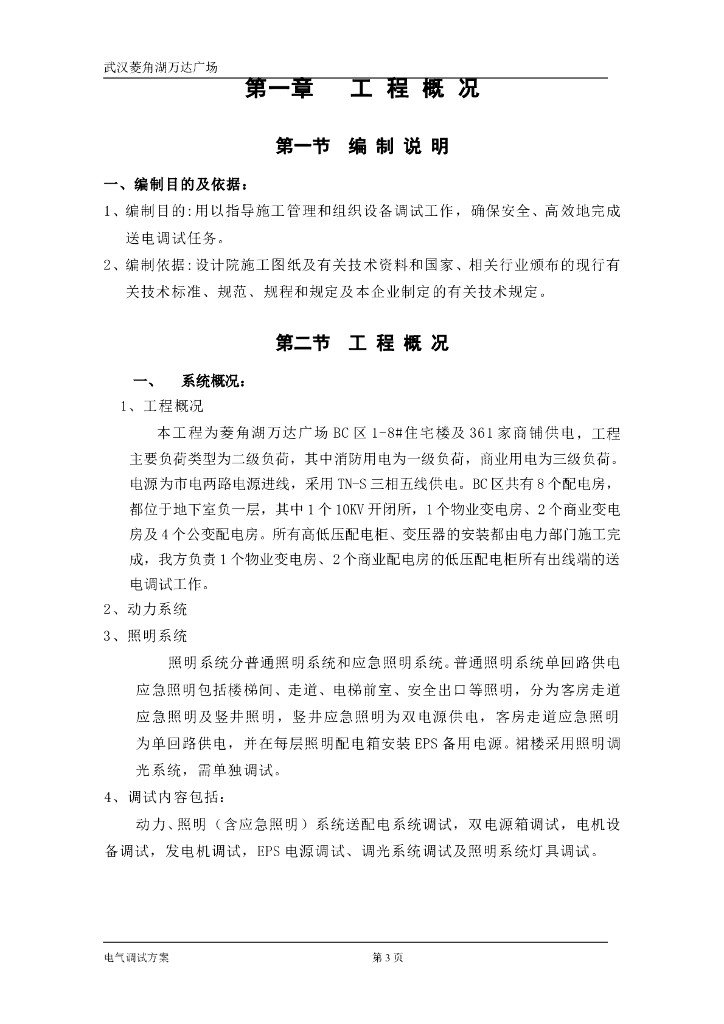 [武汉]菱角湖知名地产广场电气调试方案.doc
