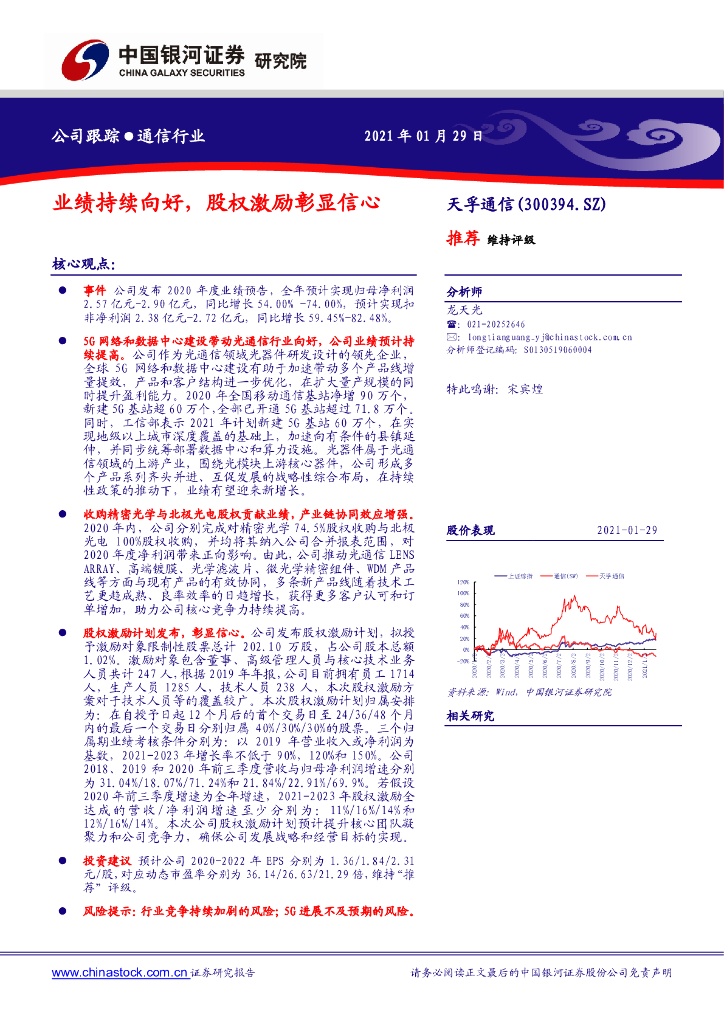 中国银河:天孚通信(300394)-业绩持续向好,股权激励彰显信心.pdf