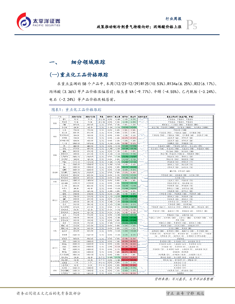 太平洋证券:化工行业周报:政策推动制冷剂景气持续向好;丙烯酸价格上涨.pdf