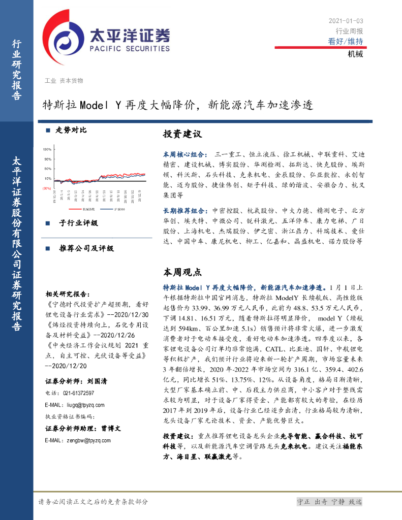 太平洋证券:机械行业周报:特斯拉Model Y再度大幅降价,新能源汽车加速渗透.pdf