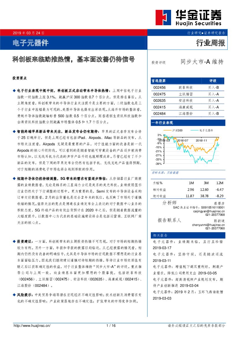 华金证券:电子元器件行业周报:科创板来临助推热情,基本面改善仍待信号.pdf