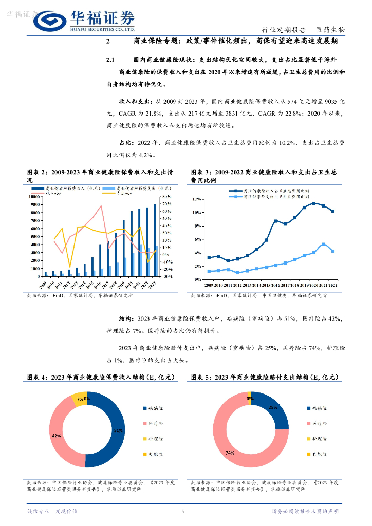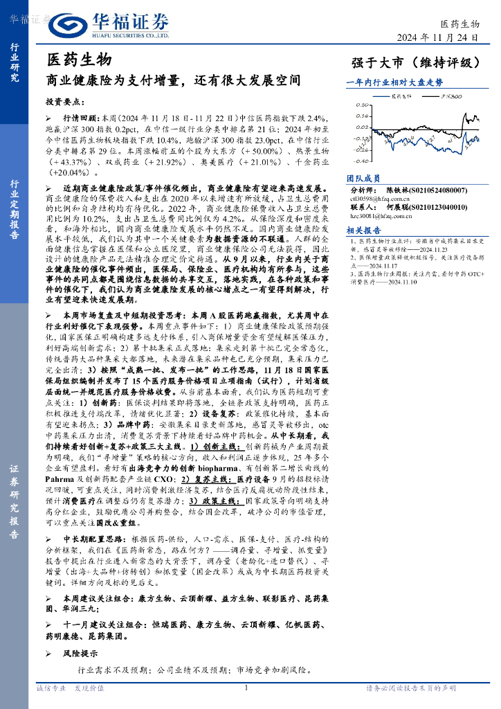 华福证券:医药生物行业定期报告:商业健康险为支付增量,还有很大发展空间.pdf