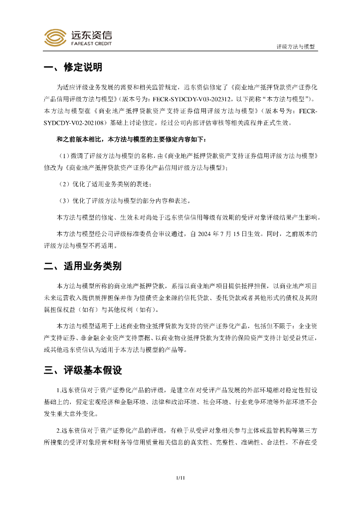 远东资信:商业地产抵押贷款资产证券化产品信用评级方法与模型.pdf