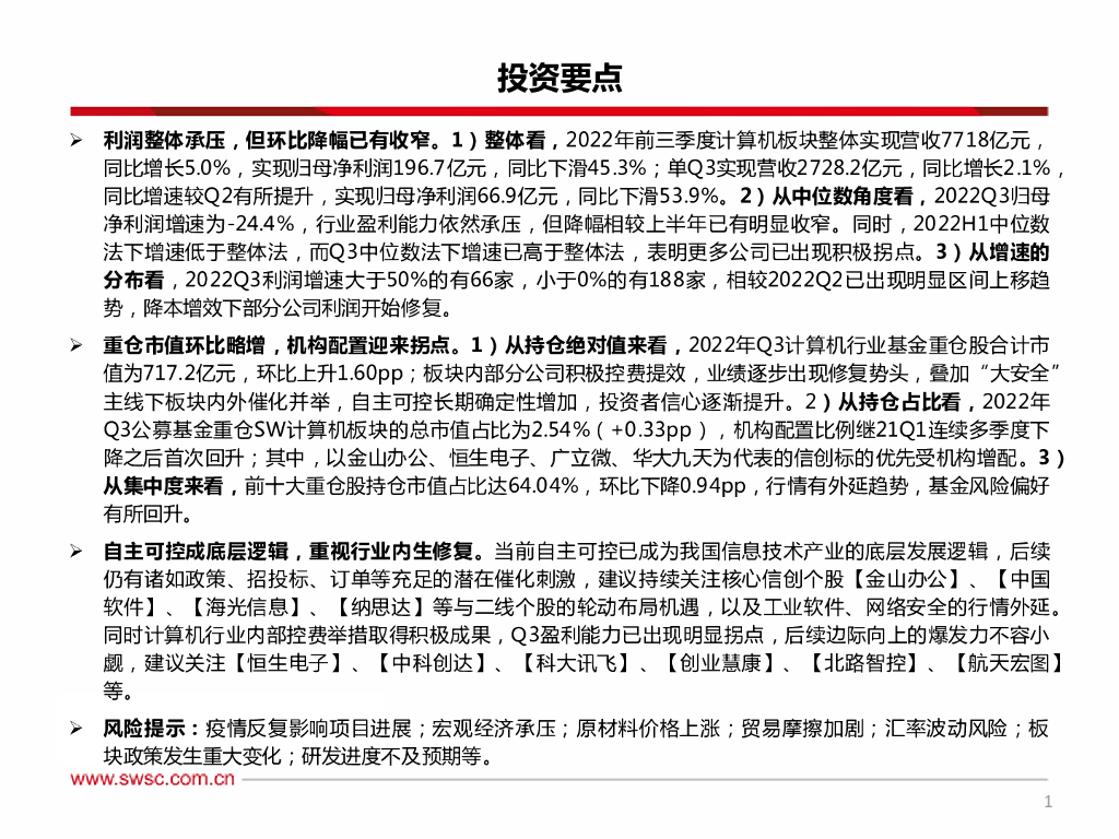 西南证券:计算机行业2022年三季报总结&机构持仓分析:机构配置迎来拐点,“大安全”主线势在必行.pdf