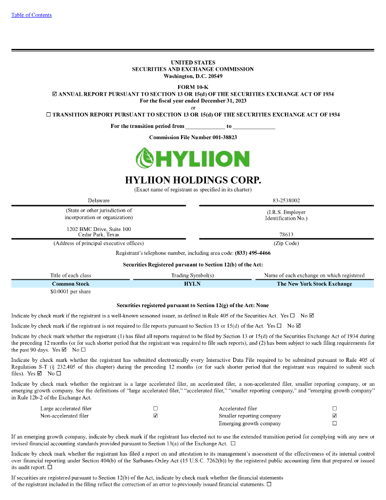 Hyliion Holdings Corp.(HYLN)2023财年年度报告(英文版).pdf