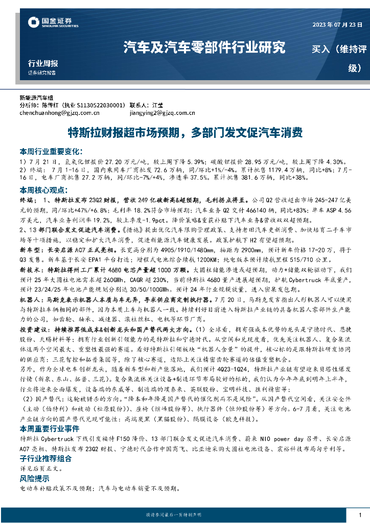 国金证券:汽车及汽车零部件行业研究:特斯拉财报超市场预期,多部门发文促汽车消费.pdf