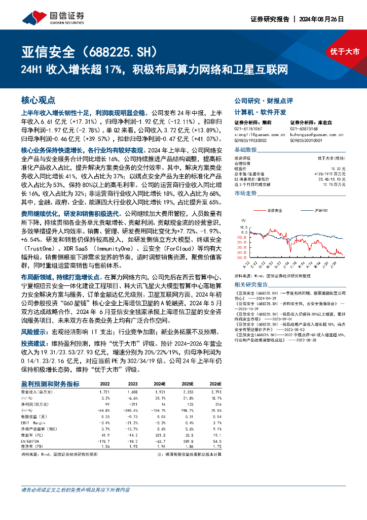 国信证券:亚信安全(688225)-24H1收入增长超17%,积极布局算力网络和卫星互联网.pdf