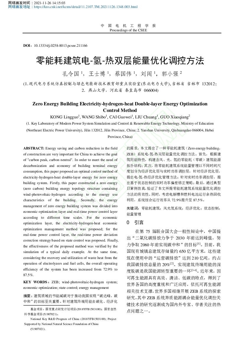 东北电力大学:零能耗建筑电-氢-热双层能量优化调控方法.pdf