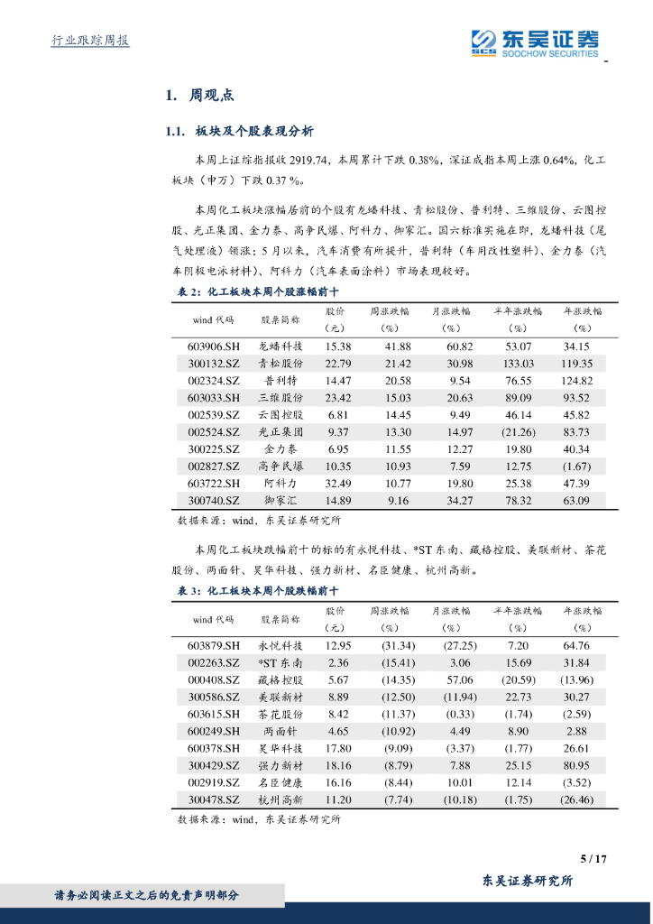 东吴证券:化工行业2020年6月第2周周报:继续推荐国六及新老基建相关化学品标的.pdf