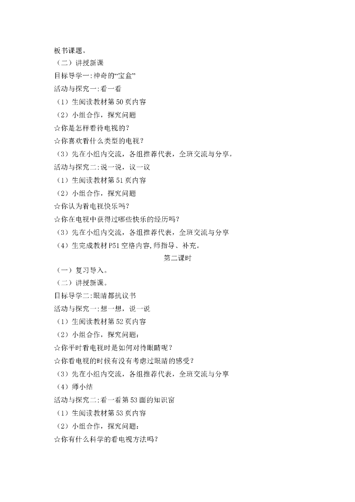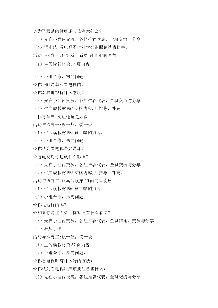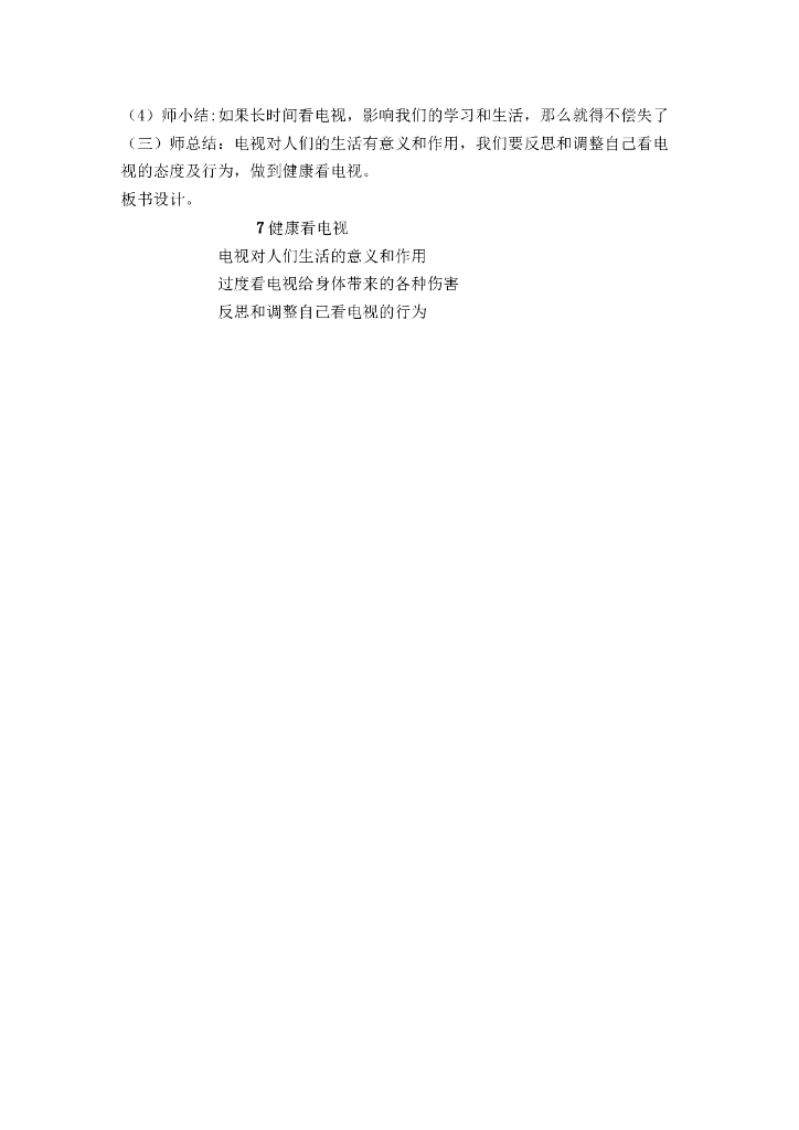 道德与法制7 健康看电视 教案1-2课时.doc