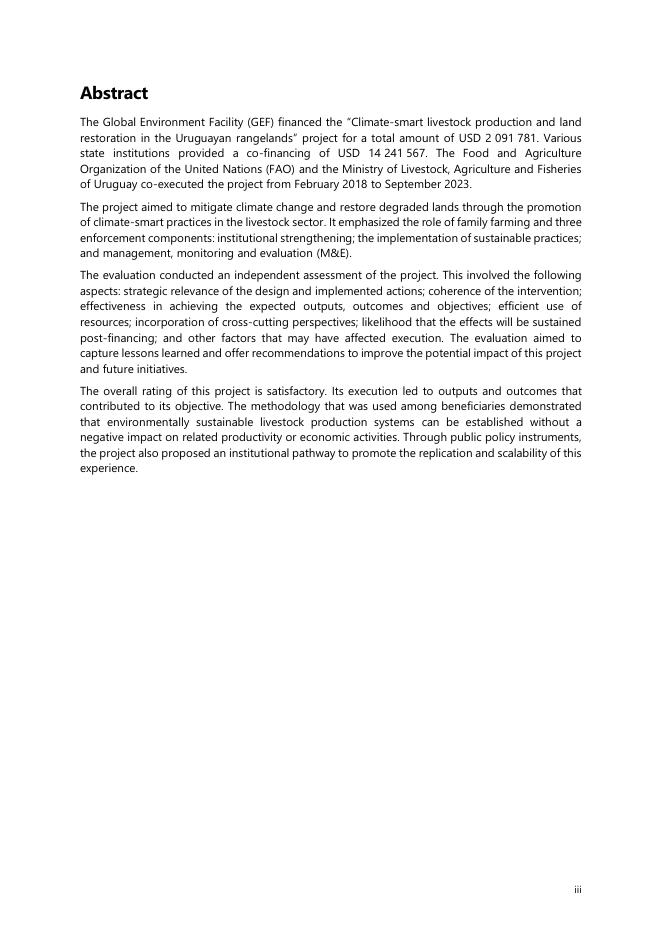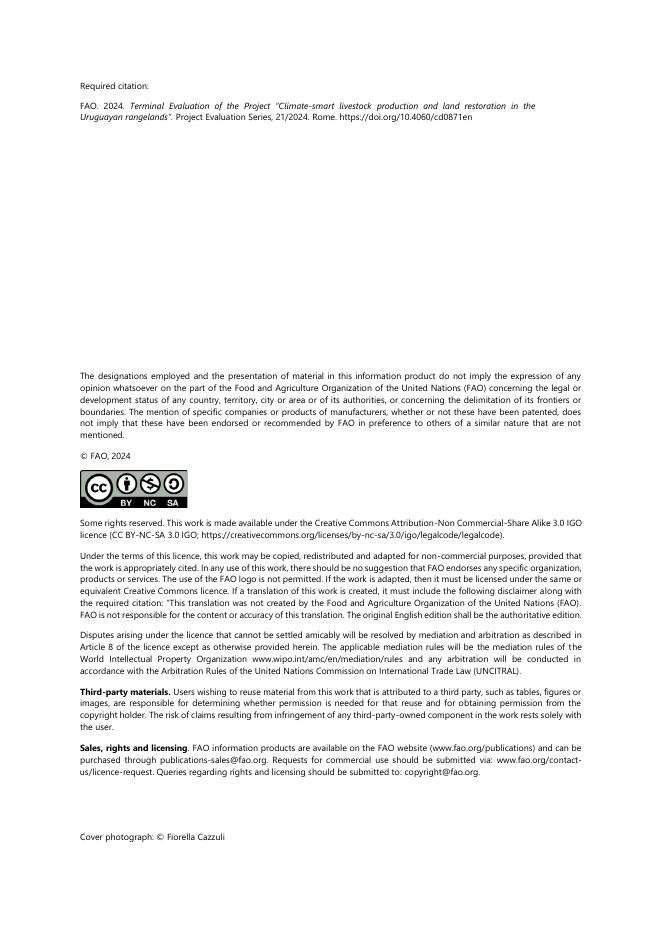 FAO联合国粮农组织:2024年该项目“气候智能牲畜生产和乌拉圭牧场的土地修复”项目的终端评估”报告(英文版).pdf