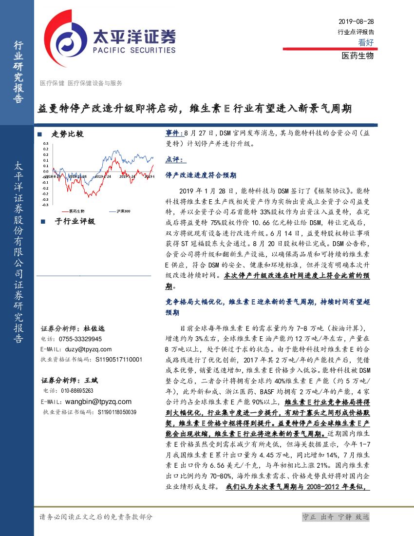 太平洋证券:医药生物:益曼特停产改造升级即将启动,维生素E行业有望进入新景气周期.pdf