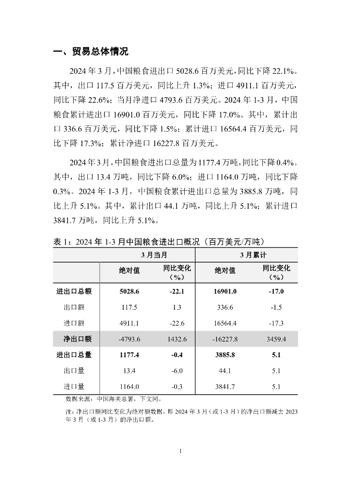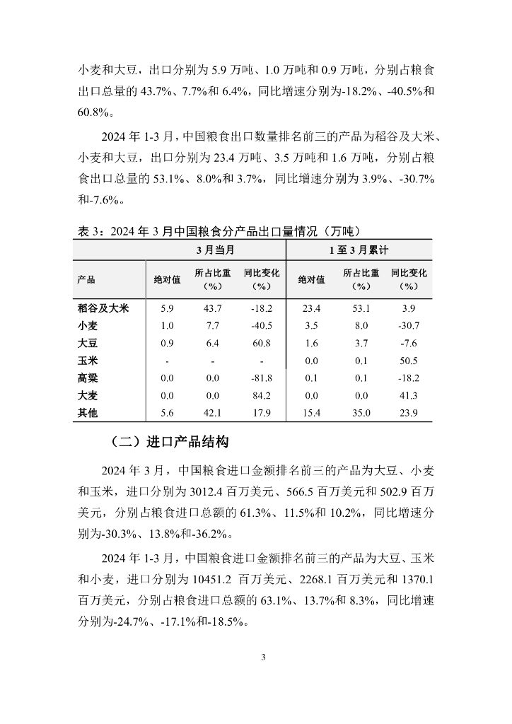 对外经济贸易大学:中国粮食贸易月度监测报告(2024年1-3月).pdf
