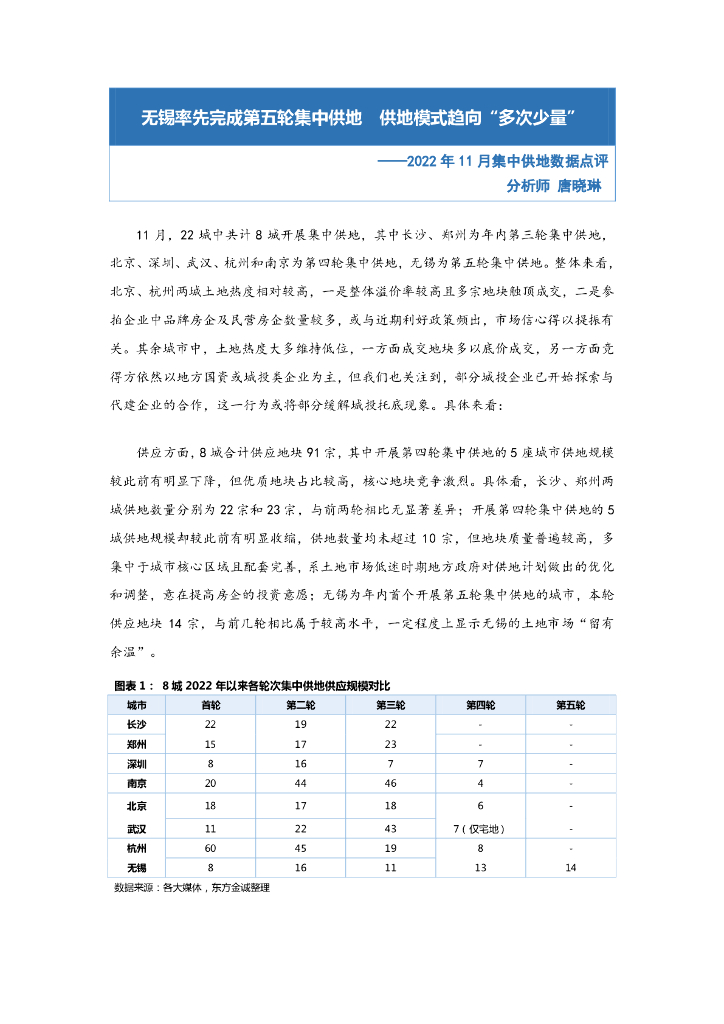 东方金诚:11月集中供地数据点评:无锡率先完成第五轮集中供地 供地模式趋向“多次少量”.pdf