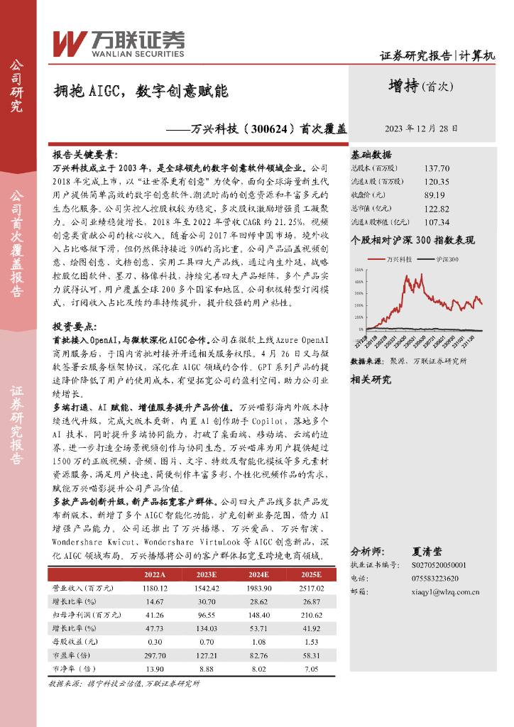 万联证券:万兴科技(300624)-首次覆盖:拥抱AIGC,数字创意赋能.pdf