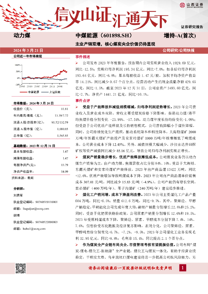 山西证券:中煤能源(601898)-主业产销双增,核心煤炭央企价值仍待显现.pdf