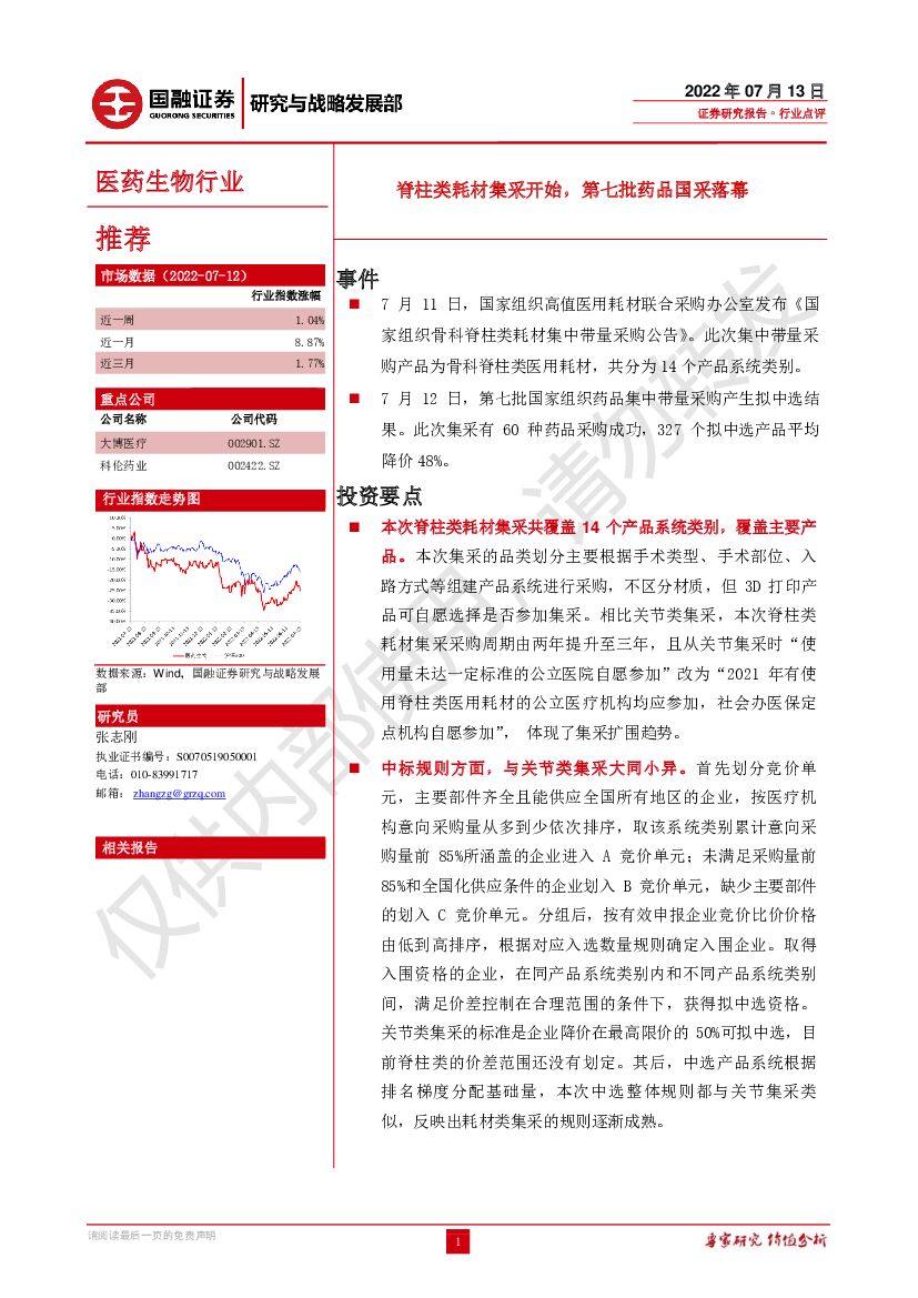 国融证券:医药生物行业:脊柱类耗材集采开始,第七批药品国采落幕.pdf