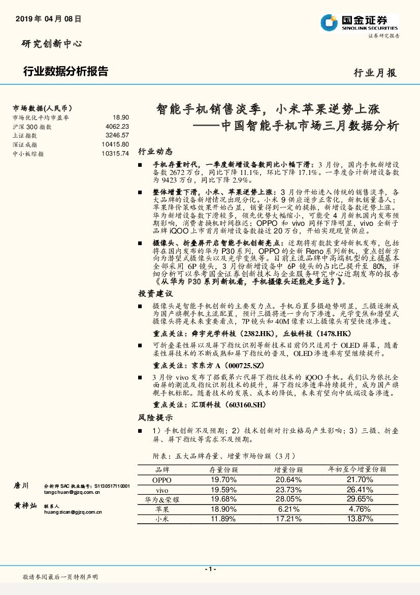 国金证券:中国智能手机市场三月数据分析:智能手机销售淡季,小米苹果逆势上涨.pdf