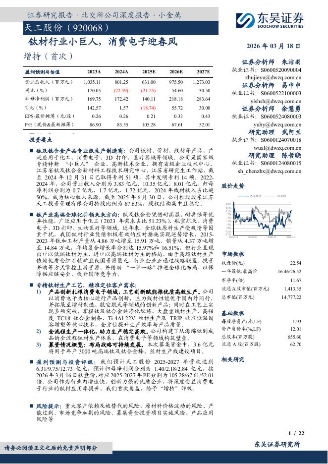 东吴证券:天工股份(920068)-钛材行业小巨人,消费电子迎春风.pdf