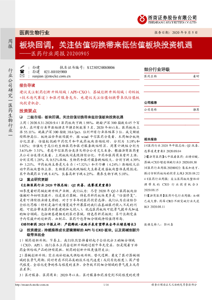 浙商证券:医药行业周报:板块回调,关注估值切换带来低估值板块投资机遇.pdf